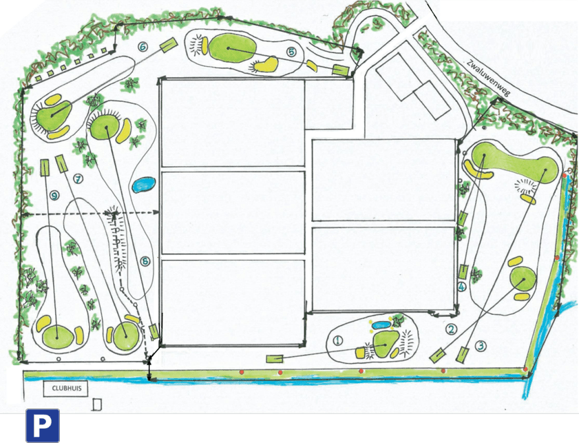 Onze baan uitdagende 9-holes par-3-baan is ideaal om het korte spel te verbeteren, voor de beginnende én de ervaren golfer. De waterpartijen en bunkers zorgen voor extra uitdagingen op de fairways en rond de greens. De baan heeft een NGF-status en is qualifying.